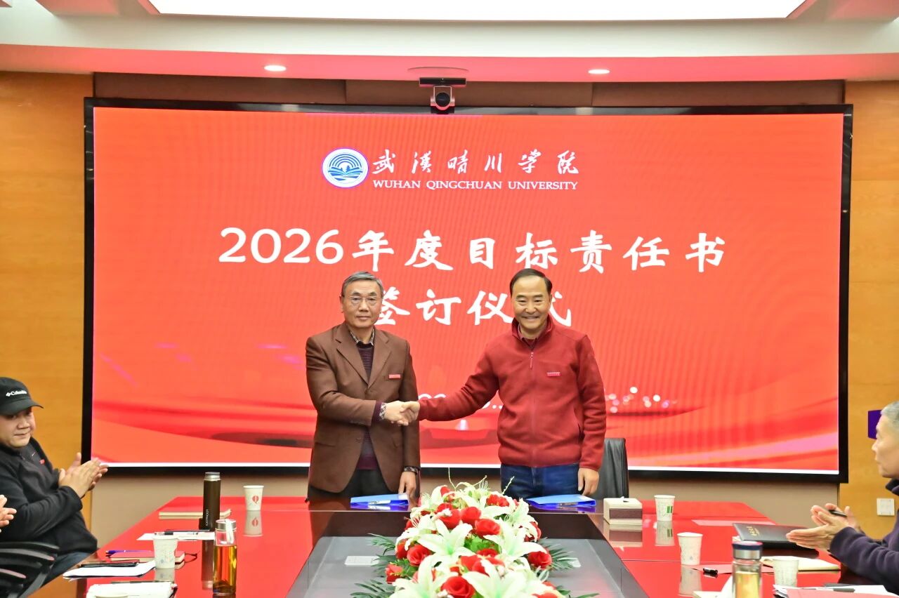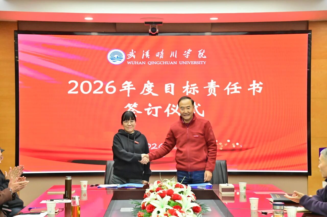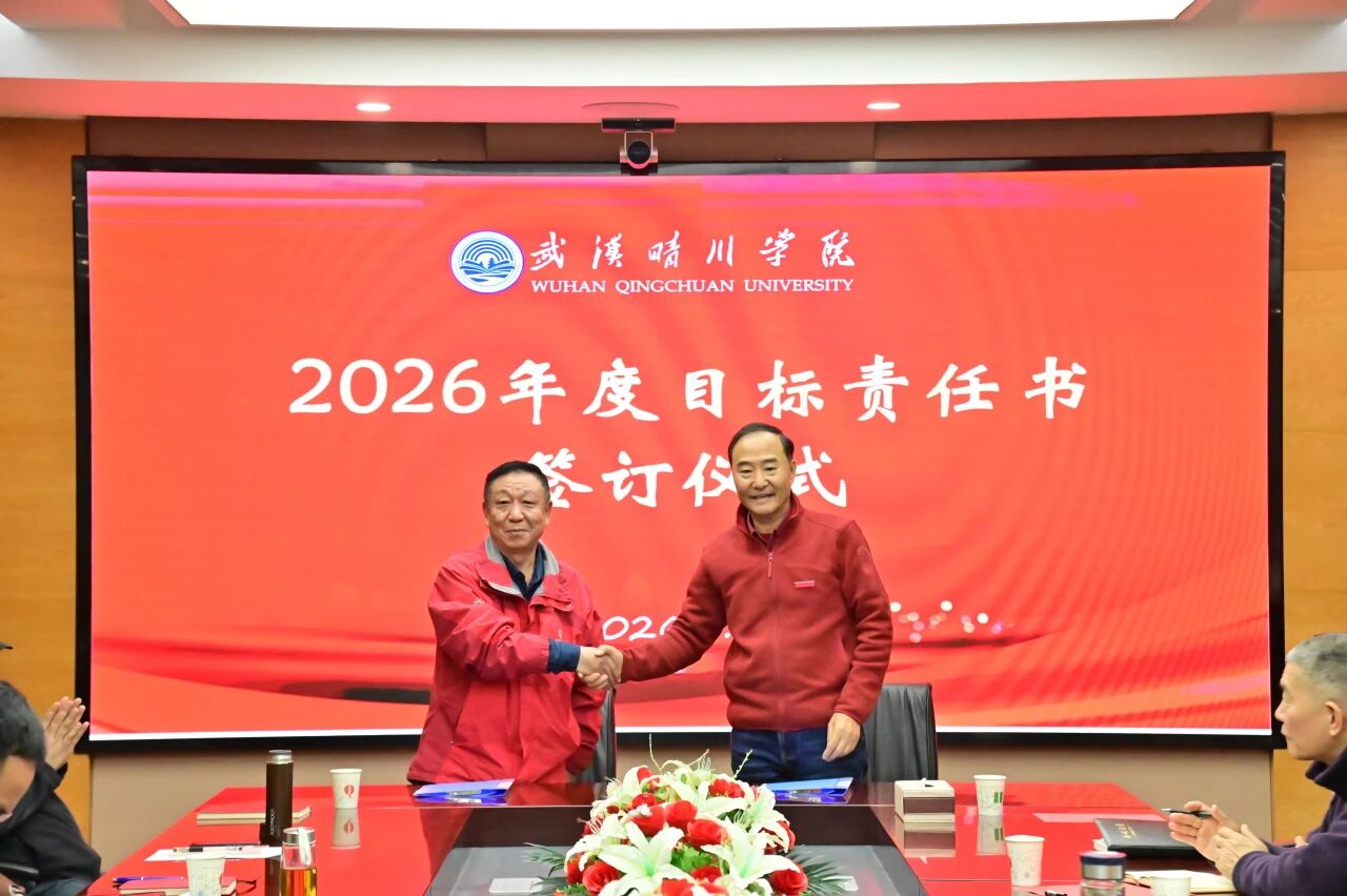 锚定目标启新程,乘势而上谱新篇。3月30日下午,武汉晴川学院2026年度目标责任书签订仪式顺利举行。董事长、校长汪彬教授出席并讲话,全体校领导、各二级学院(课部)院长(主任)、各职能部门负责人参加。仪式由副校长彭宇文主持。